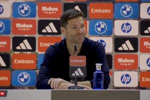 今日西甲比赛,皇马主场4-0大胜瓦伦西亚,赛后新闻发布会,阿隆索被问及不在安菲尔德训练一事。