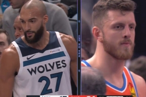 GIF-戈贝尔击中哈滕面部被吹技犯,森林狼挑战成功